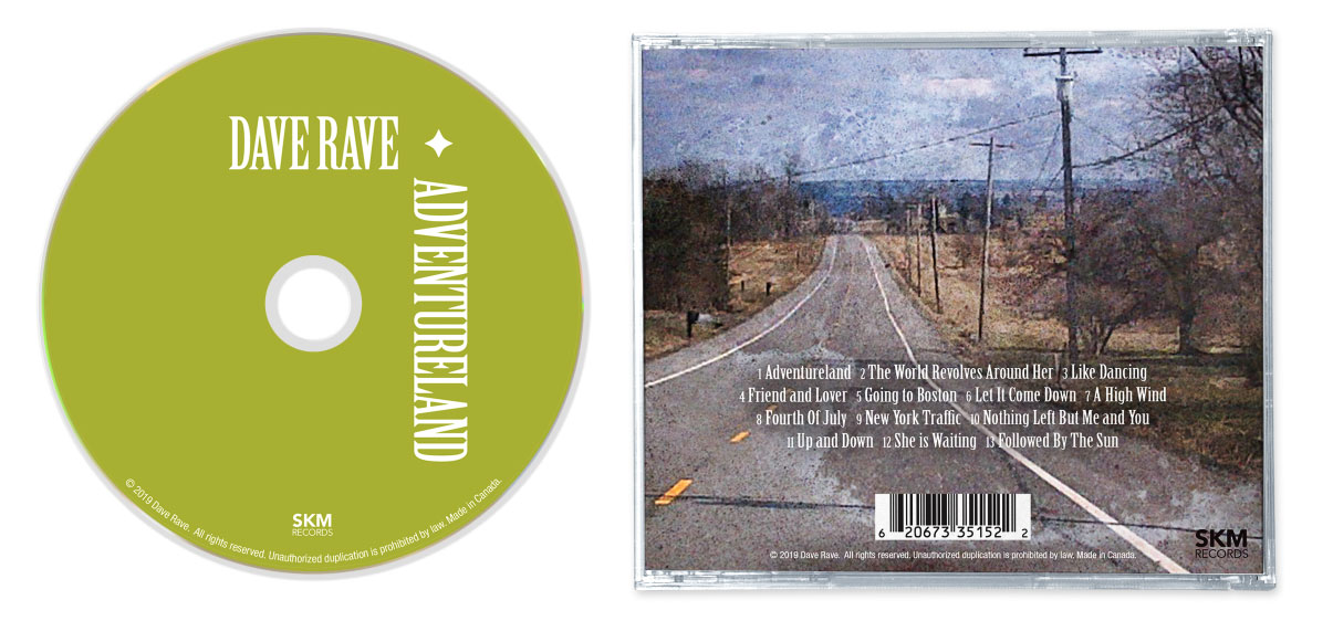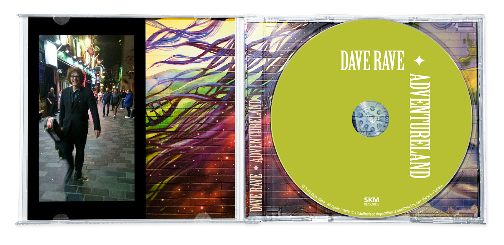 Dave Rave (The Shakers and Teenage Head) was just finishing up the mastering for his very cool solo project ‘Adventureland’, and asked me to design the CD packaging. Needless to say, I was thrilled to work together with him to achieve the final result.