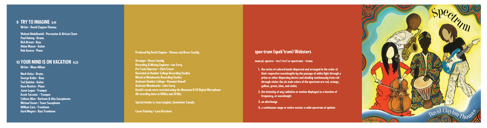 Grammy Award-winning Canadian musician, singer, and songwriter, David Clayton-Thomas (Blood, Sweat & Tears) had a clear idea of what he wanted in a design right from the start. The cover art was provided by David, and he wanted it to reflect throughout the rest of the packaging.