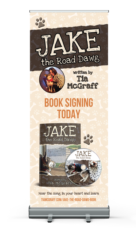 Singer/Songwriter Tia McGraff had written an interesting children’s story illustrating the adoption and life of her road companion, “Jake, the Road Dawg”, and wanted to publish it for the enjoyment of others. I formatted the book—which included an illustrated map, photo section and CD—as well as the promotional banner for use on her book signing tour.